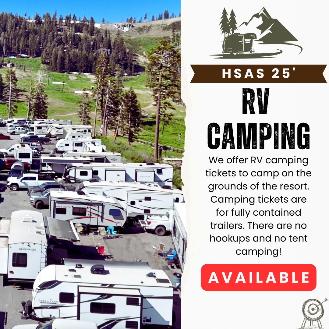 We offer RV camping tickets to camp on the grounds of the resort. Camping tickets are for fully contained trailers. There are no hookups and no tent camping!